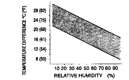 11. Verify that the intersection of the temperature difference and the relative humidity is in the shaded zone.