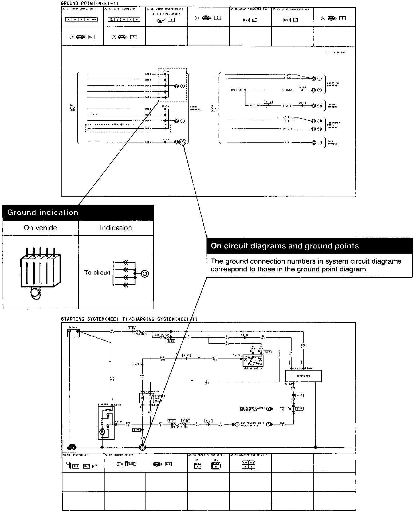 This shows ground points of the harness.