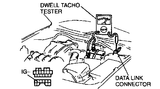 2. Connect a dwell/tach. tester to the data link connector terminal IG-.