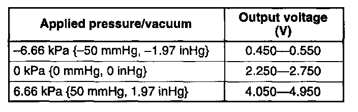 - Fuel tank pressure sensor terminal C voltage: Constant voltage (4.5 - 5.5 V)