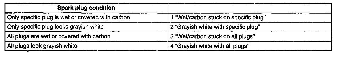 PURPOSEBy checking condition of the spark plugs, judgement whether problem is related to a specific cylinder or all cylinders is possible.