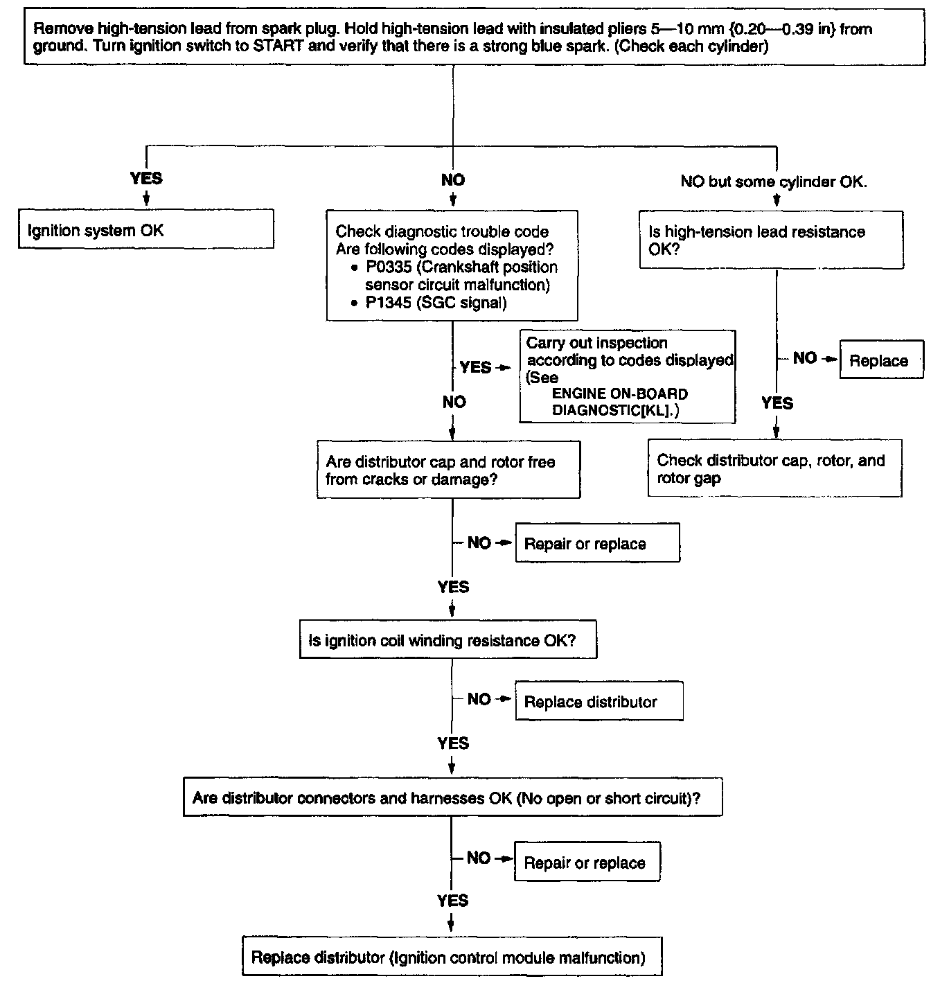 - High voltage in the Ignition system can cause strong electrical shock. Avoid direct contact to the vehicle body during the following spark test.