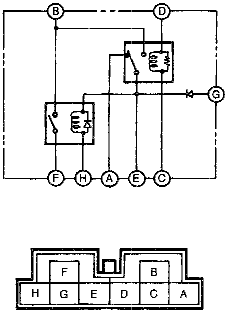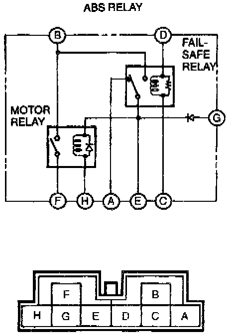 1. Measure the resistance between terminals E and H. or between a and h of the ABS relay connector.