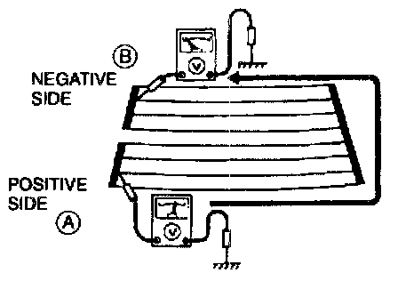 CAUTION: Directly touching the rear window defroster filament with the lead of the circuit tester will damage it. Wrap aluminum foil around the end of the lead and test the filament by touching it with the foil.