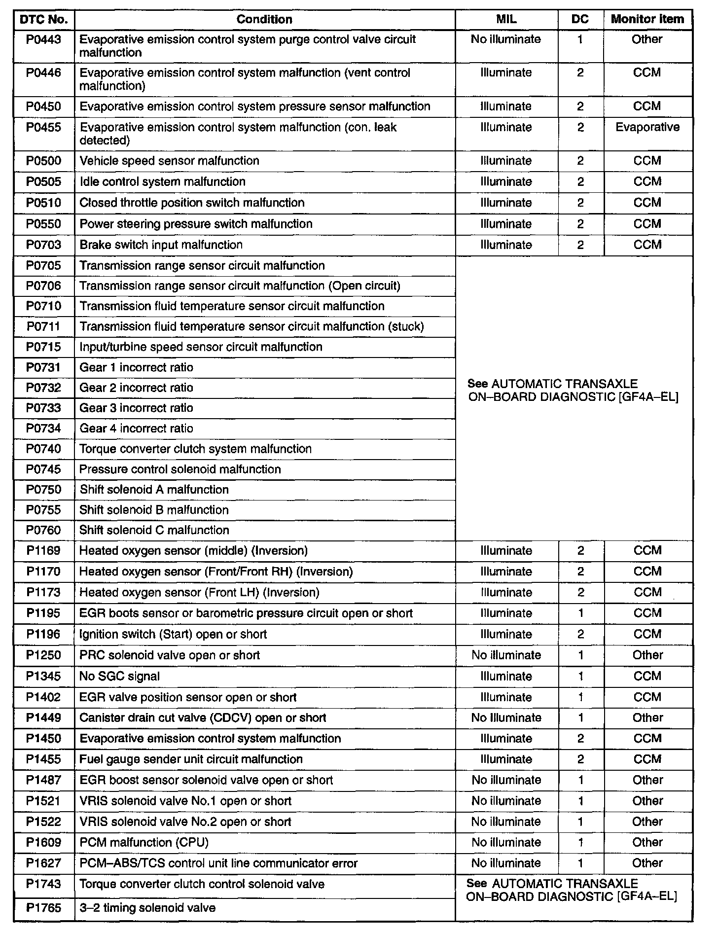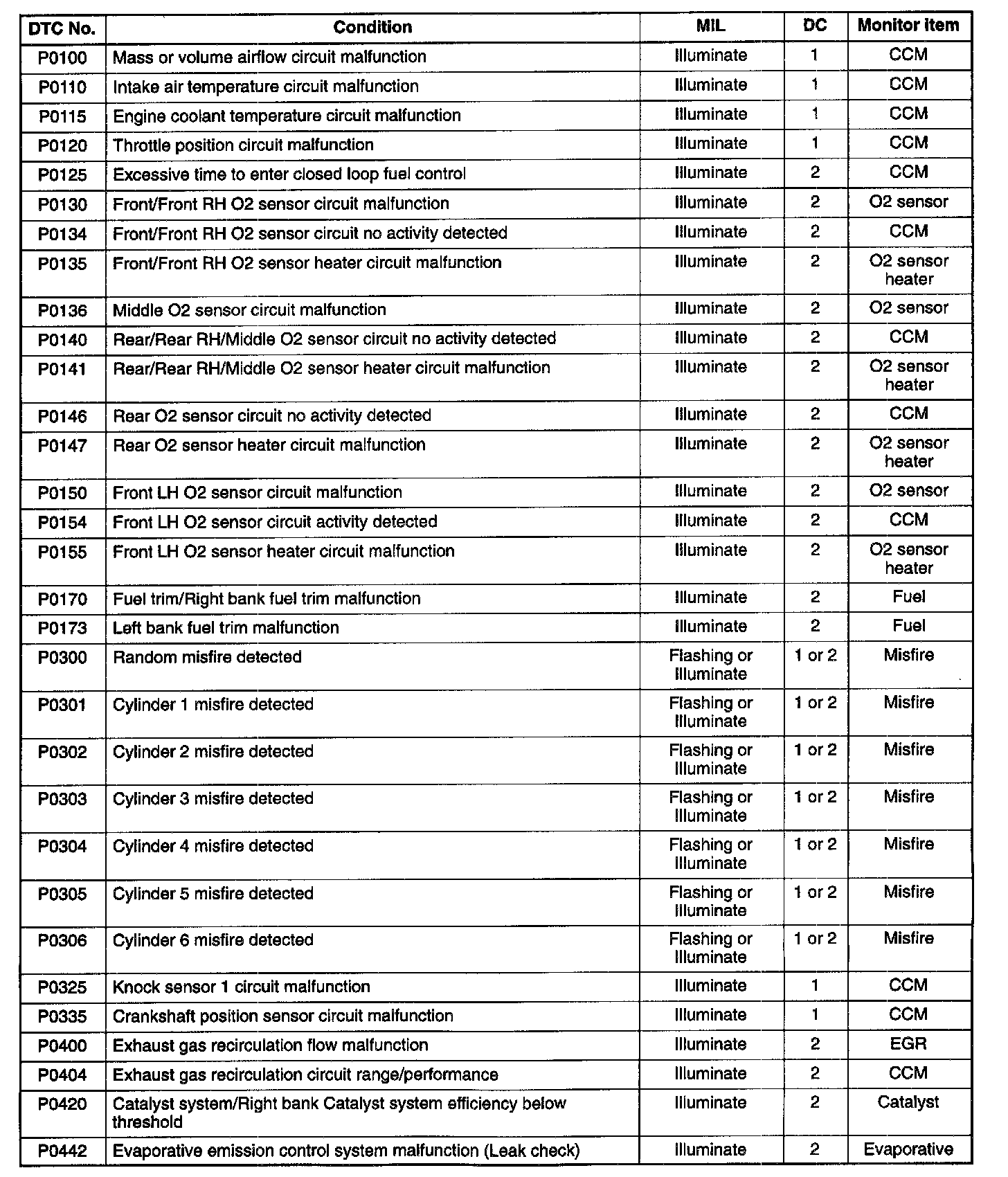 - DC signifies the number of consecutive drive cycle (Engine start-Ignition switch at OFF-Next ignition switch at ON) that is required to store the DTC by the PCM.