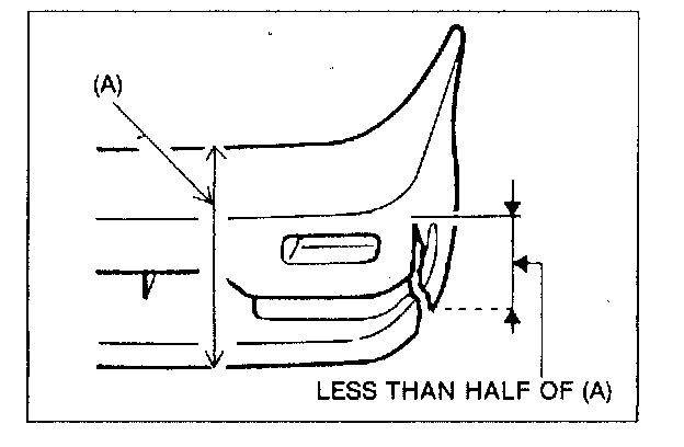 The three types of damaged bumpers shown below are considered repairable. Although a bumper which has been damaged greater than this could also be repaired, it should be replaced with a new one because such repair would detract from the looks and quality of the bumper. In addition, such repair is not considered reasonable in terms of work time.