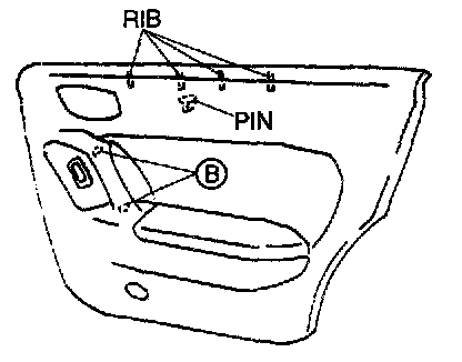 3. Lift the door trim up and remove the ribs, pin and clips B together.