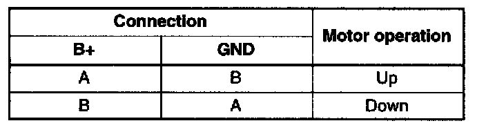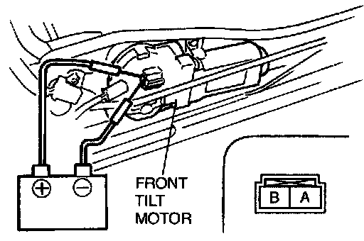 4. Inspect the front tilt motor operation when battery positive voltage is applied to the terminals as shown.