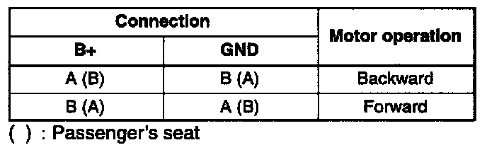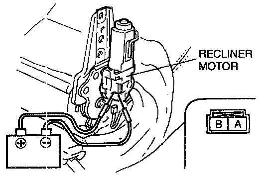 4. Inspect the recliner motor operation when battery positive voltage is applied to the terminal as shown.