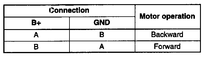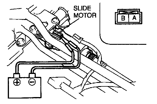 4. Inspect the slide motor operation when battery positive voltage is applied to the terminals as shown.