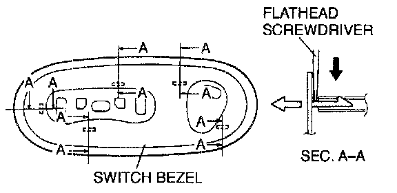 ^ Insert a flathead screwdriver wrapped in tape, and pull up to remove the clips.
