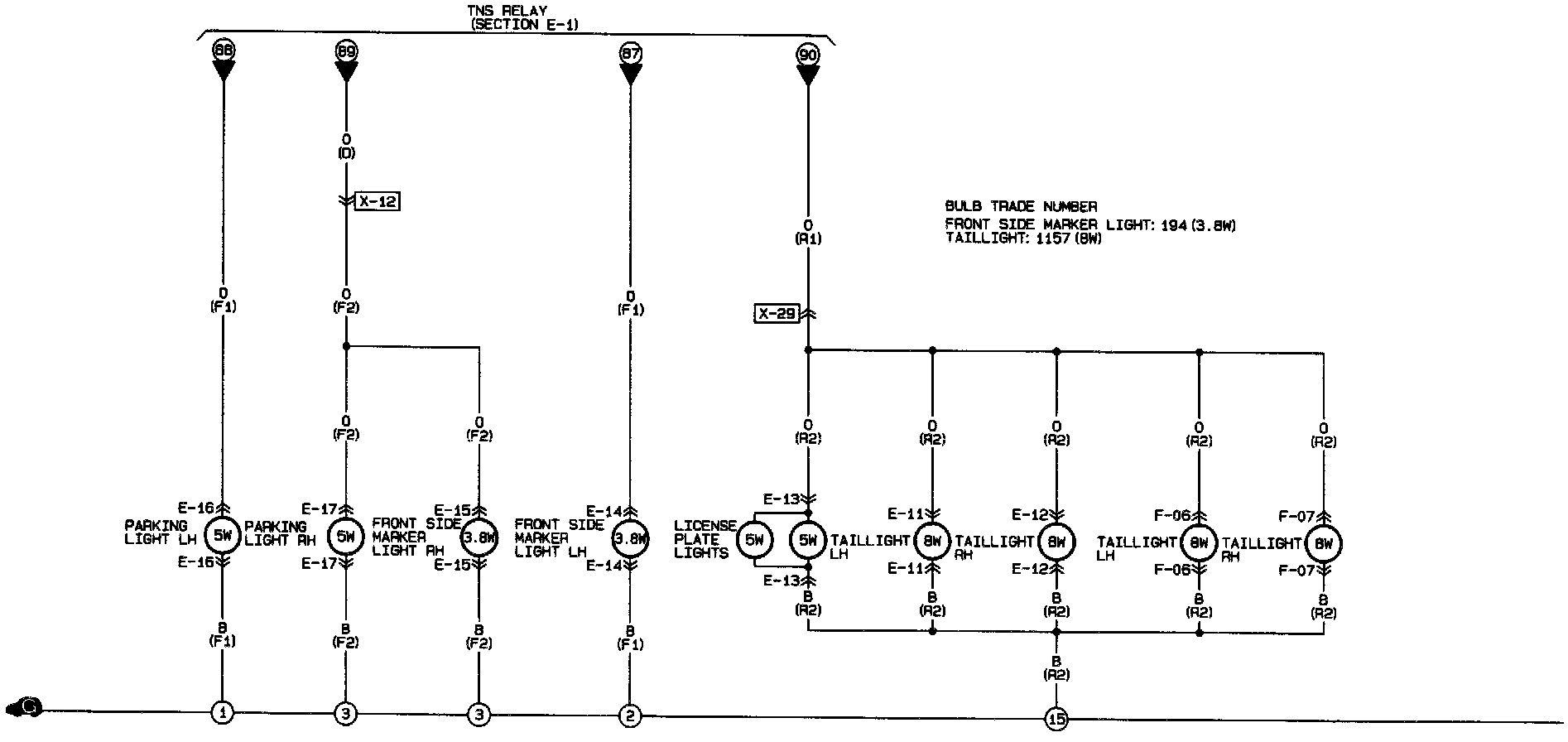 Taillights, Parking Lights, Front Side Marker Lights, Licence Plate Lights: