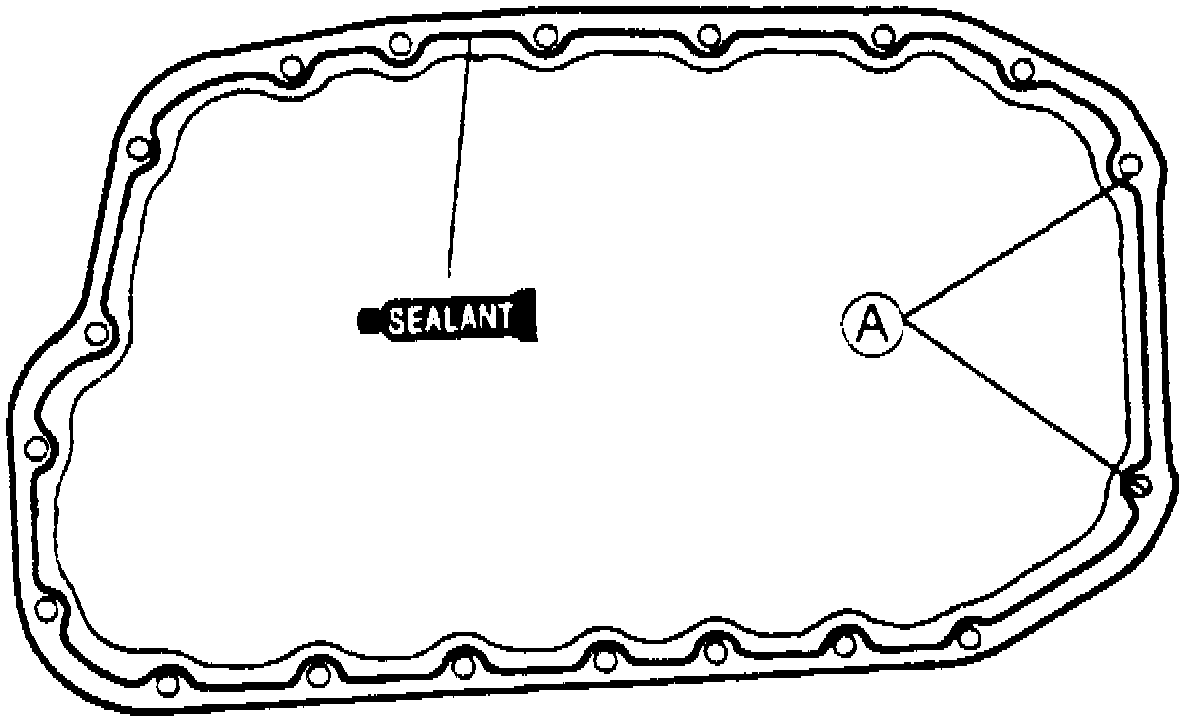 2. Apply suitable silicone sealant to oil pan flange, then install. Install oil pan within five minutes of sealant application.