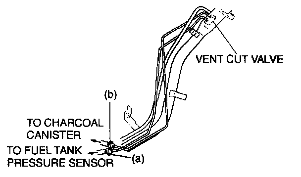 1. Confirm that air goes through from (a) to (b) with the fuel-filler cap on.