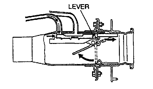 4. While depressing the lever in the fuel-filler port, confirm that air does not go through from (a) to (b).