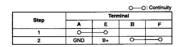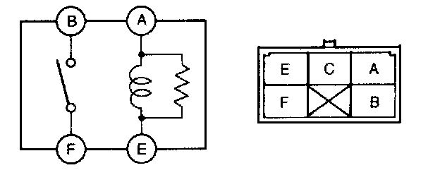 3. Inspect for continuity between the headlight relay terminals by using an ohmmeter.