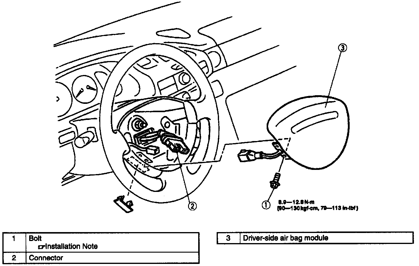 WARNING:^ Handling the air bag module Improperly can accidently deploy the air bag module, which may seriously Injure you. Read AIR BAG SYSTEM SERVICE WARNINGS, before handling the air bag module. (Refer to AIR BAG SYSTEM SERVICE WARNINGS.)