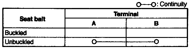 Check for continuity between the buckle switch terminals by using an ohmmeter.