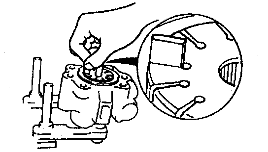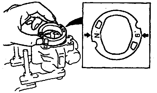 - Install the cam ring in the pump body (front) with the mark facing upward.