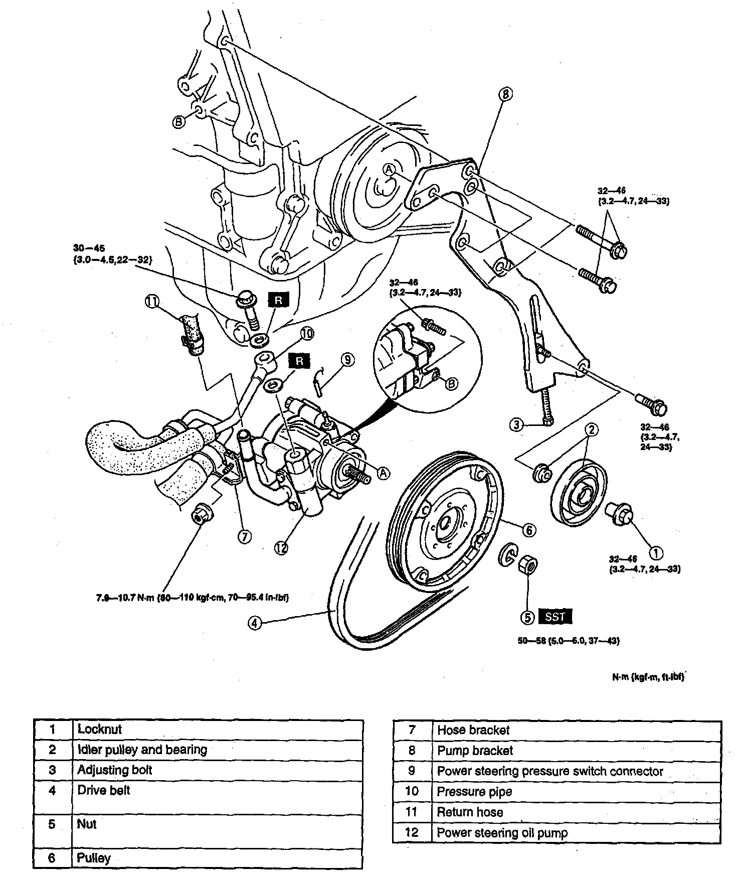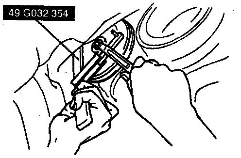 - Insert the Special Service Tool (SST) into the hole of the pulley. While holding the pulley, loosen/tighten the nut.