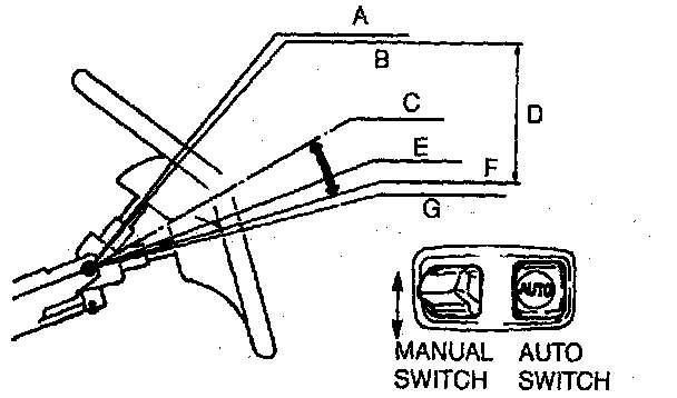 Insert the key into the ignition switch and move the manual switch up/down and verify that the steering wheel tilts up/down. To solve faulty operation, follow the Diagnosis Chart.NOTE: This control stops operation when the following occur.