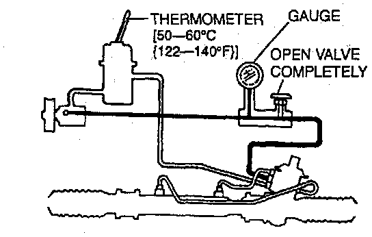 6. Open the gauge valve fully. Start the engine and turn the steering wheel fully left and right to raise the fluid temperature to 50 - 60°C (122 - 140°F).