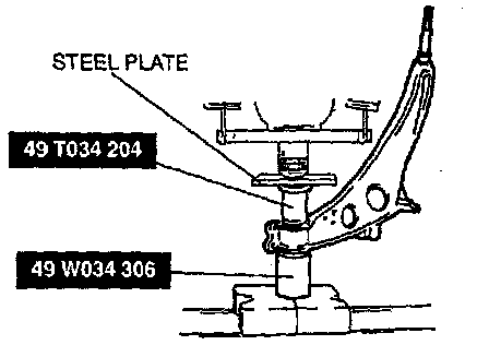 - Press the lower arm bushing out by using the SSTs.