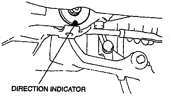 - Install the lower arm bushing so that the direction indicator is facing down.