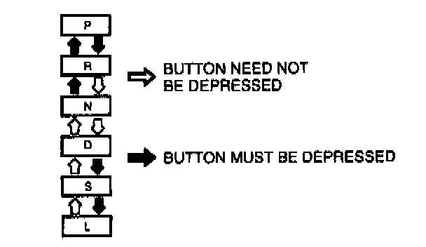 2. With the brake pedal depressed, verify that there is a "click" at each range when shifted in the pattern shown.