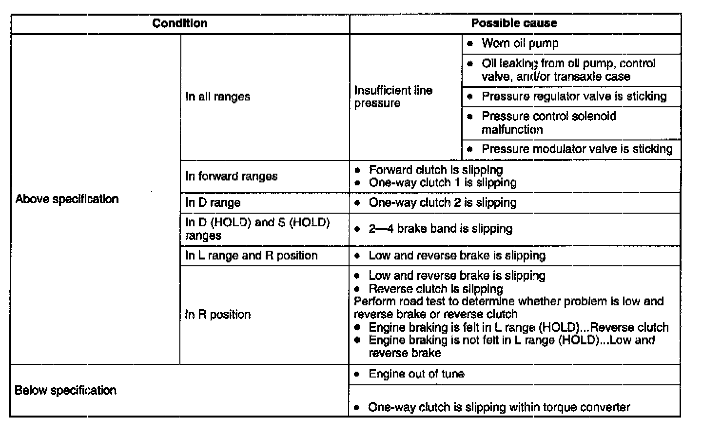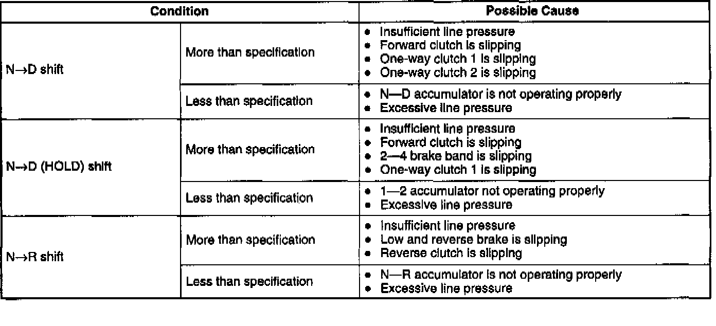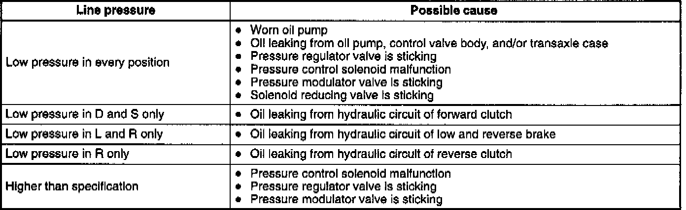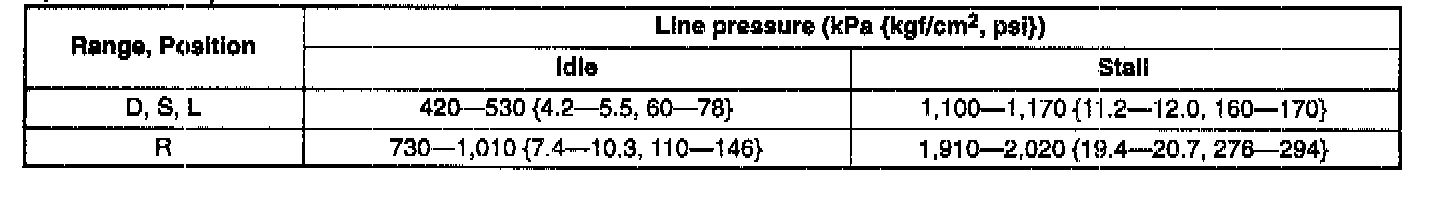 3. Shift the selector lever to D range and read the line pressure at idle.