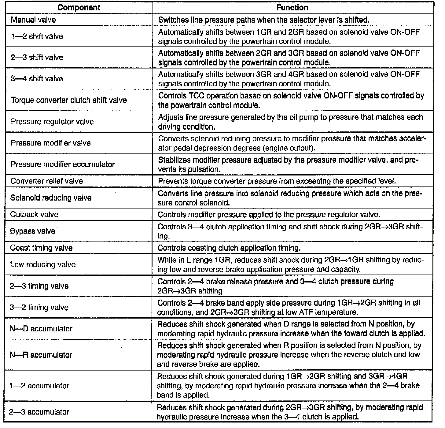 The bypass valve controls 3-4 clutch application timing and shifting shock during 2nd -> third gear shifting.