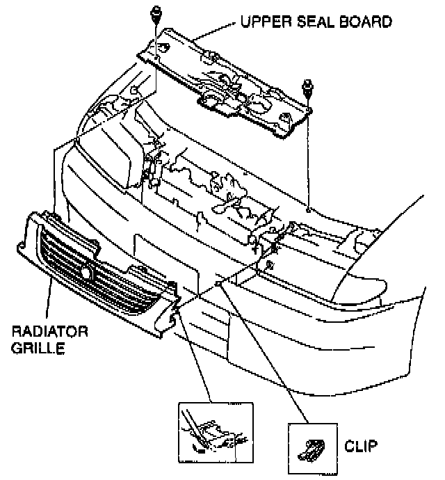 2. Push the clips downward by using a tape-wrapped flathead screwdriver to remove the radiator grille.