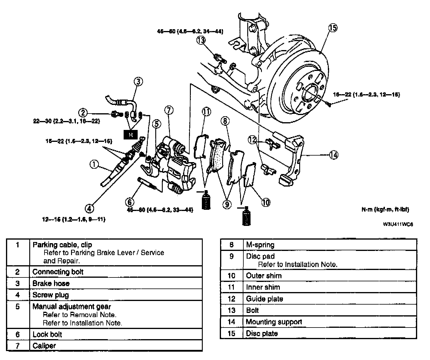 3. After installation, depress the pedal several times. Then rotate the wheel by hand, anal verify that the brakes do not drag.