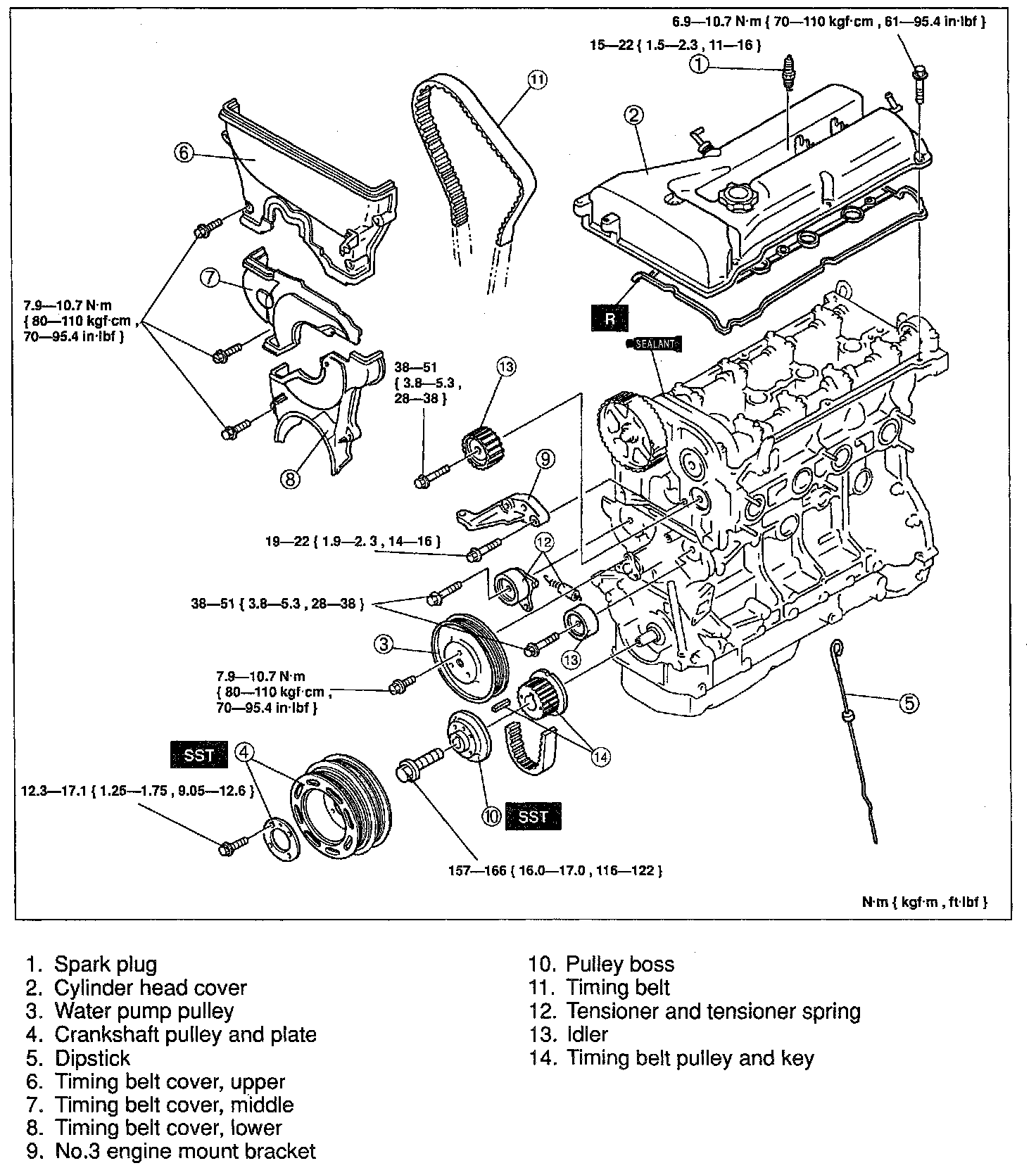 TIMING BELT1. Disassemble in the order shown in the figure, referring to Disassembly Note.