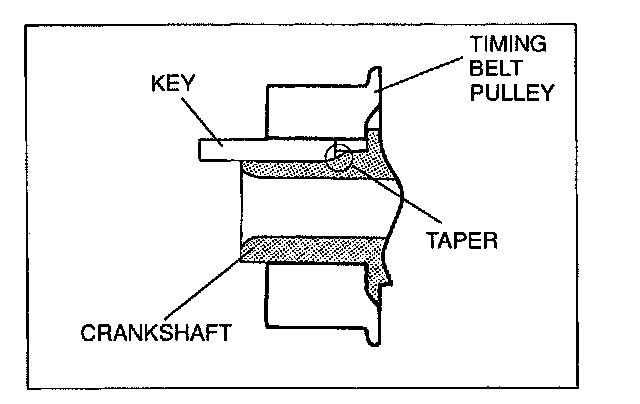Insert the key into the timing belt pulley, facing the tapered side downward. Push the key until it stops.