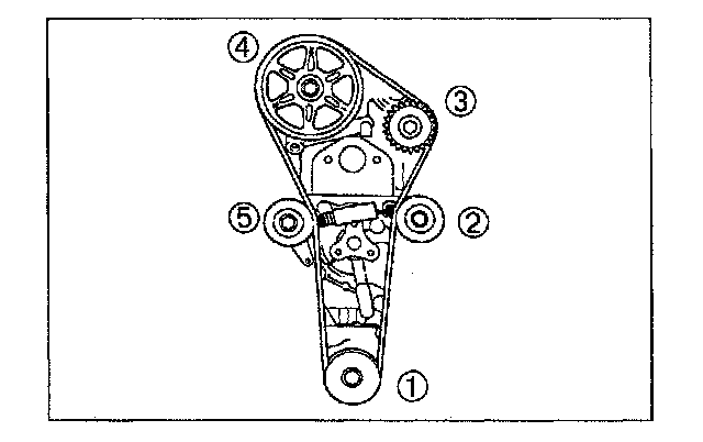 2. Install the timing belt on the pulleys in the order shown below.