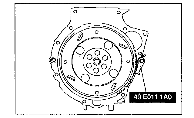 1. Hold the flywheel (MTX) or drive plate (ATX) by using the SST.