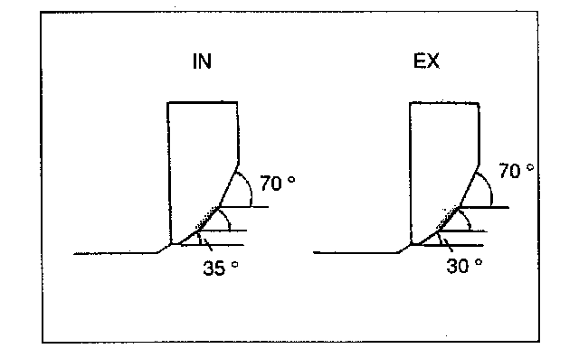 1) If the seating position is too high, correct the valve seat using a 70° cutter, and a 45° cutter.