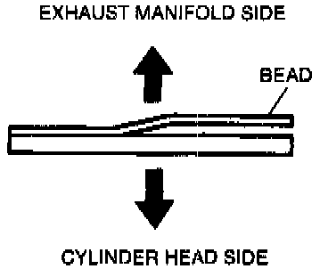 ^ Face the bead of the gasket toward the exhaust manifold as shown, and install the exhaust manifold.