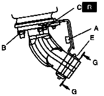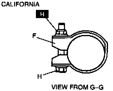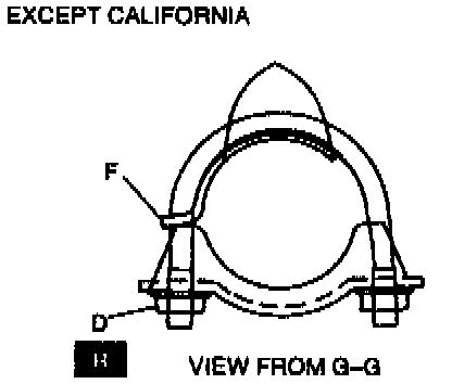 3. Inspect for correct alignment at E (front pipe and bracket).