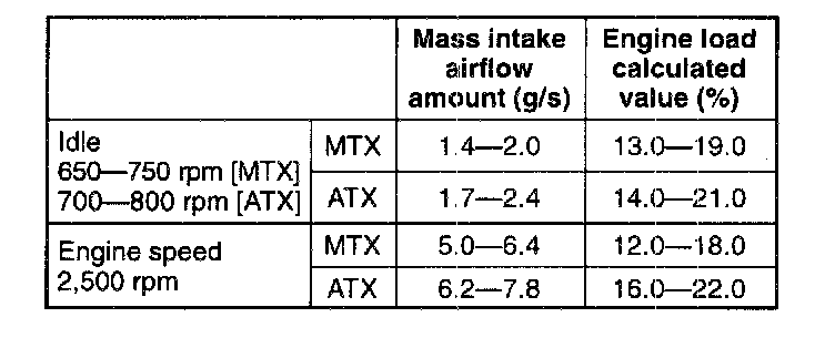 NOTE: The scan tool shows the mass airflow rate and load value.