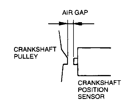 4. Measure the air gap between the crankshaft pulley projection and the crankshaft position sensor by using a feeler gauge.