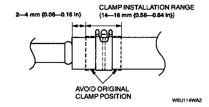 3. Install a hose clamp over the fuel hose within the clamp installation range as shown, avoiding the original clamp position.