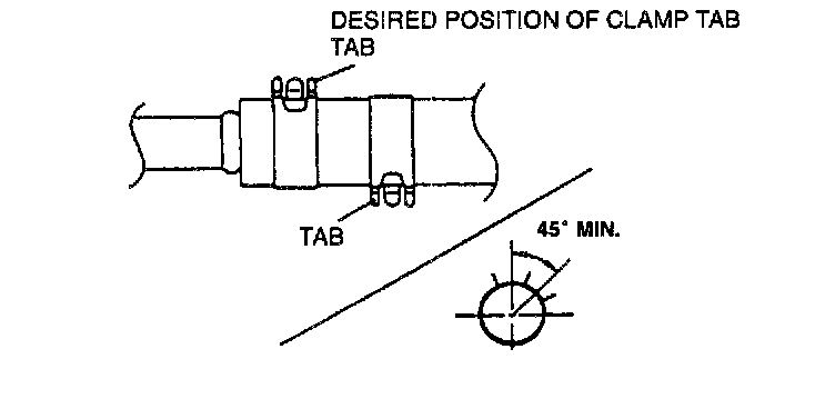 4. When installing two clamps, their tabs must be positioned more than 45° (desired 180°) apart.
