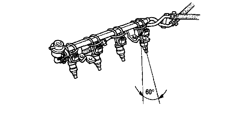 4. Tilt the fuel injectors approximately 60 degrees from upright position as shown.