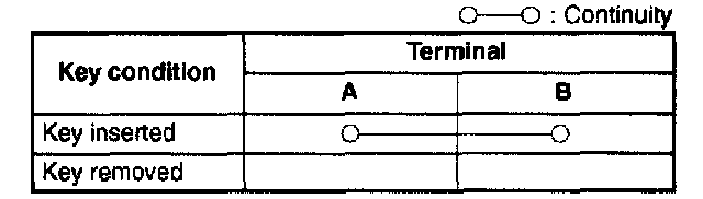 3. Inspect for continuity between the key reminder switch terminals by using an ohmmeter.