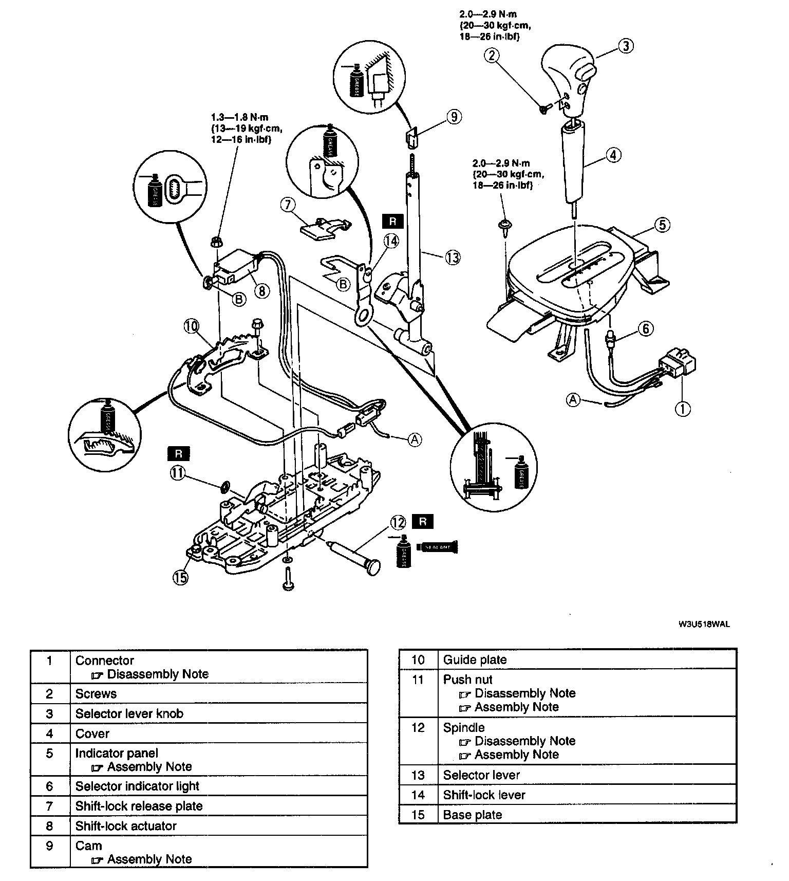 SELECTOR LEVER DISASSEMBLY/ ASSEMBLY1. Disassemble in the order indicated in the table.