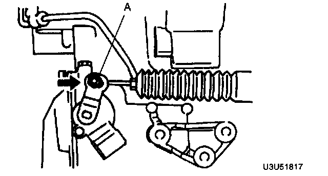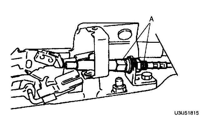 2. After verifying that the selector cable boot is not twisted, install the selector cable to the selector lever, then tighten nut A.