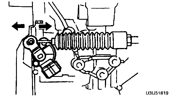 4. Position the selector cable so that there is no load in the direction of the arrows, then tighten the nut.