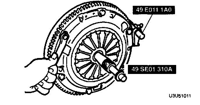 - Hold the clutch disc in position by using the SSTs.